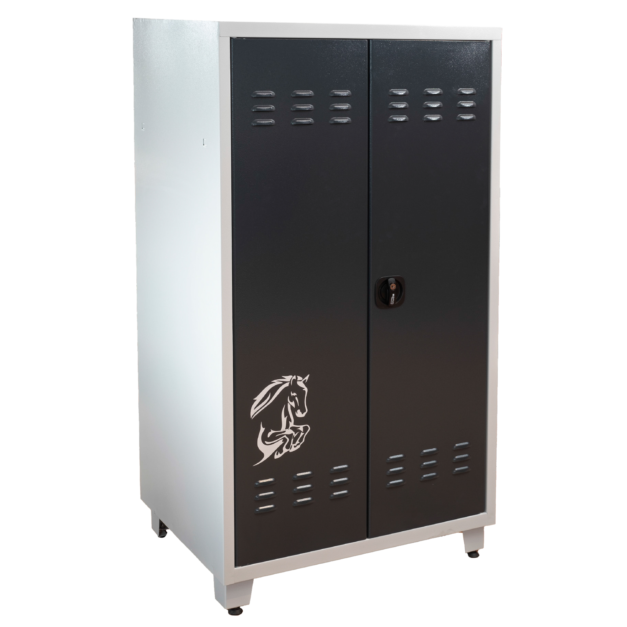- Kovová stajňová skriňa na 2 sedlá a jazdecké potreby, uzamykateľná, RAL 7035/7016