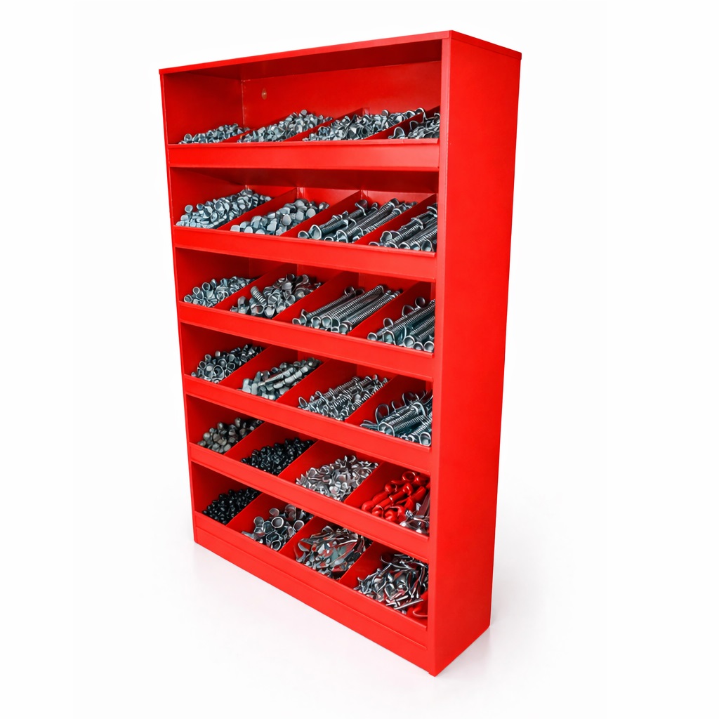 Kovový dielenský organizér na spojovací materiál a súčiastky s 24 priehradkami je praktické riešenie pre prehľadné uskladnenie šróbiek, matiek a drobných komponentov. Vďaka kompaktným rozmerom a možnosti uchytenia na stenu šetrí miesto a zvyšuje efektivitu práce v dielni.