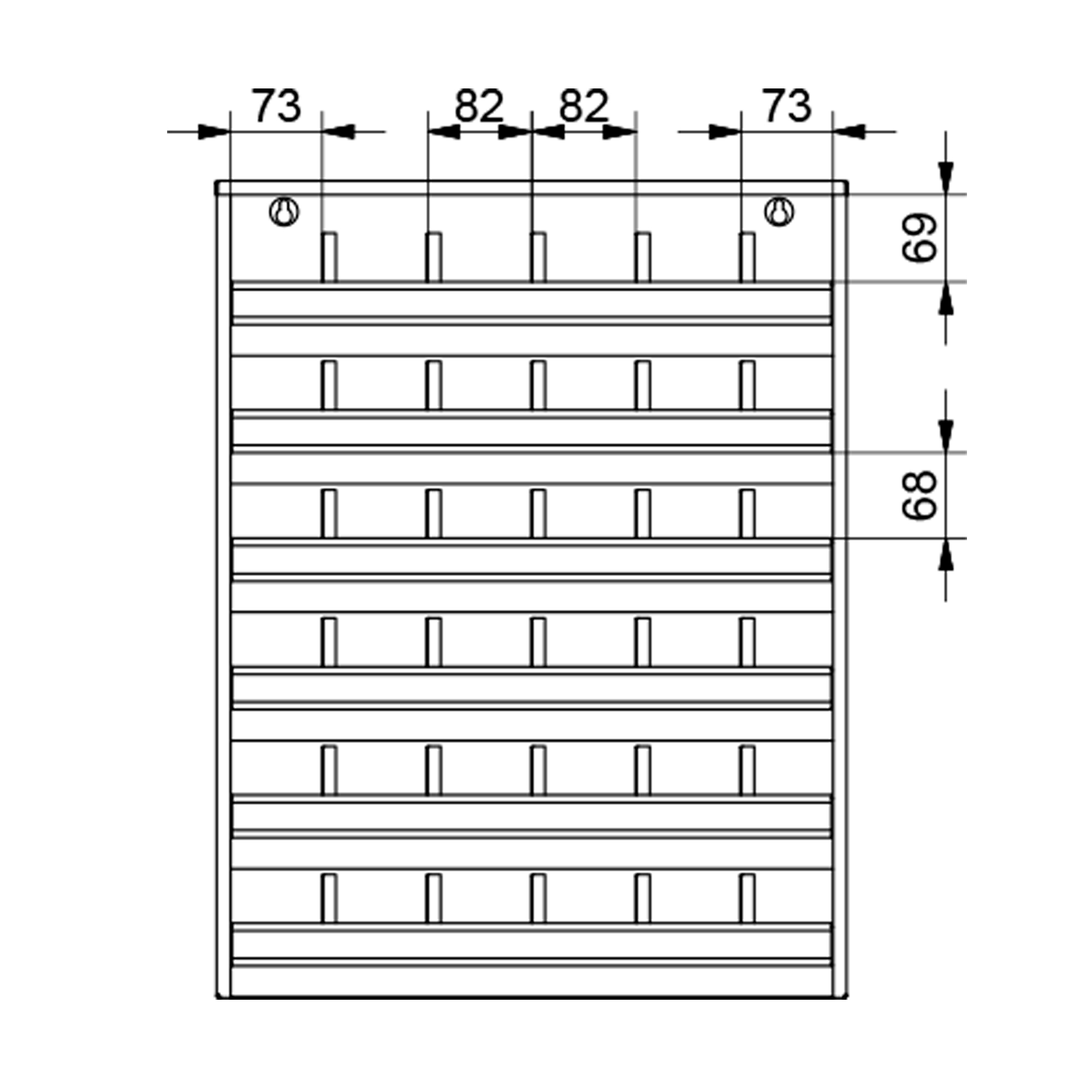 Organizér je vyrobený z kvalitného oceľového plechu s hrúbkou 0,7 – 1,5 mm, čo zaručuje vysokú pevnosť a dlhú životnosť. Konštrukcia je prispôsobená aj na uchytenie na stenu, čím šetrí miesto v pracovnom priestore a zvyšuje prehľadnosť dielne.