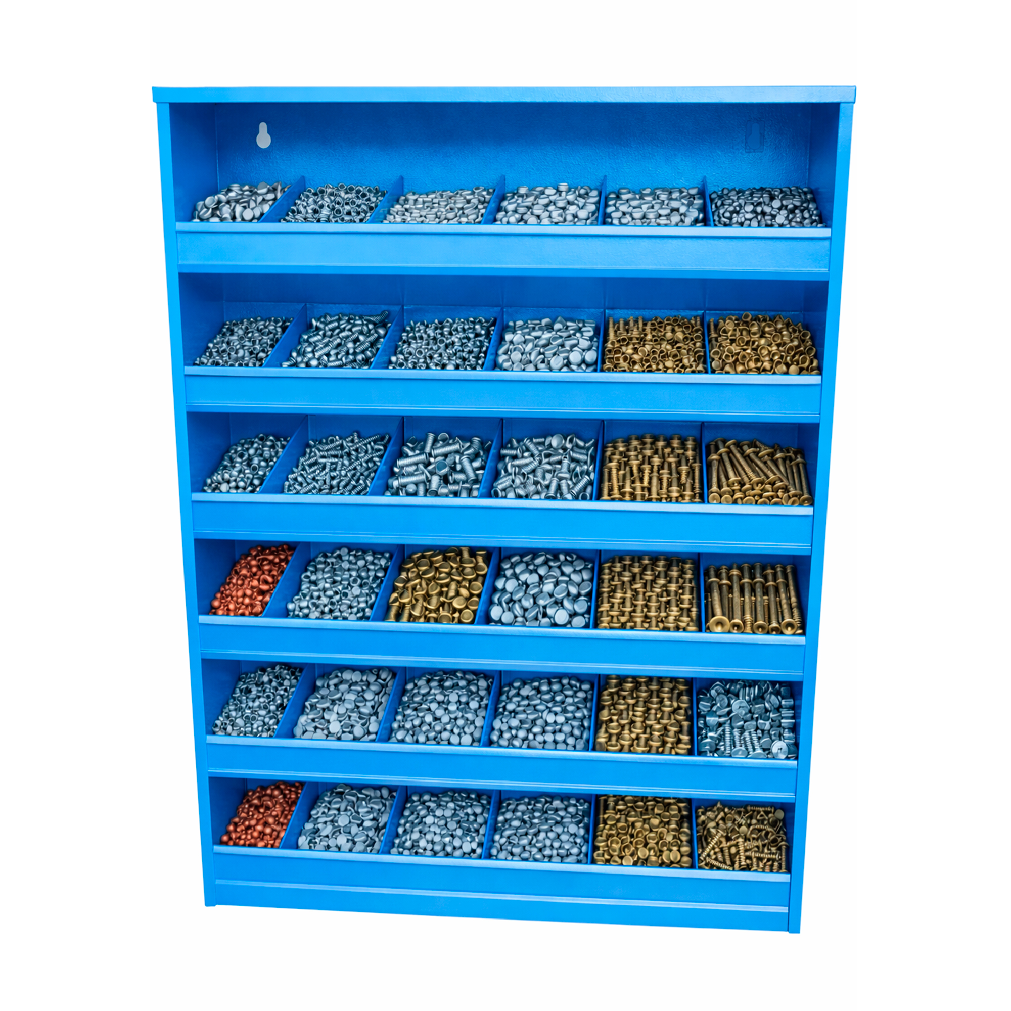 Organizér je vyrobený z kvalitného oceľového plechu s hrúbkou 0,7 – 1,5 mm, čo zaručuje vysokú pevnosť a dlhú životnosť. Konštrukcia je prispôsobená aj na uchytenie na stenu, čím šetrí miesto v pracovnom priestore a zvyšuje prehľadnosť dielne.