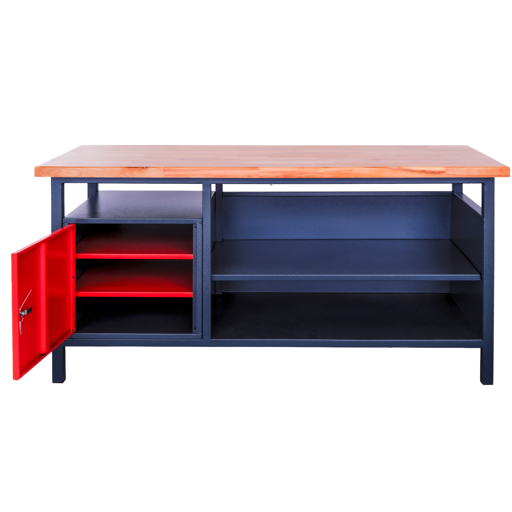 Vďaka kombinácii skrinky a police poskytuje dostatok miesta na uloženie náradia a materiálu, čím zvyšuje prehľadnosť a efektivitu práce.