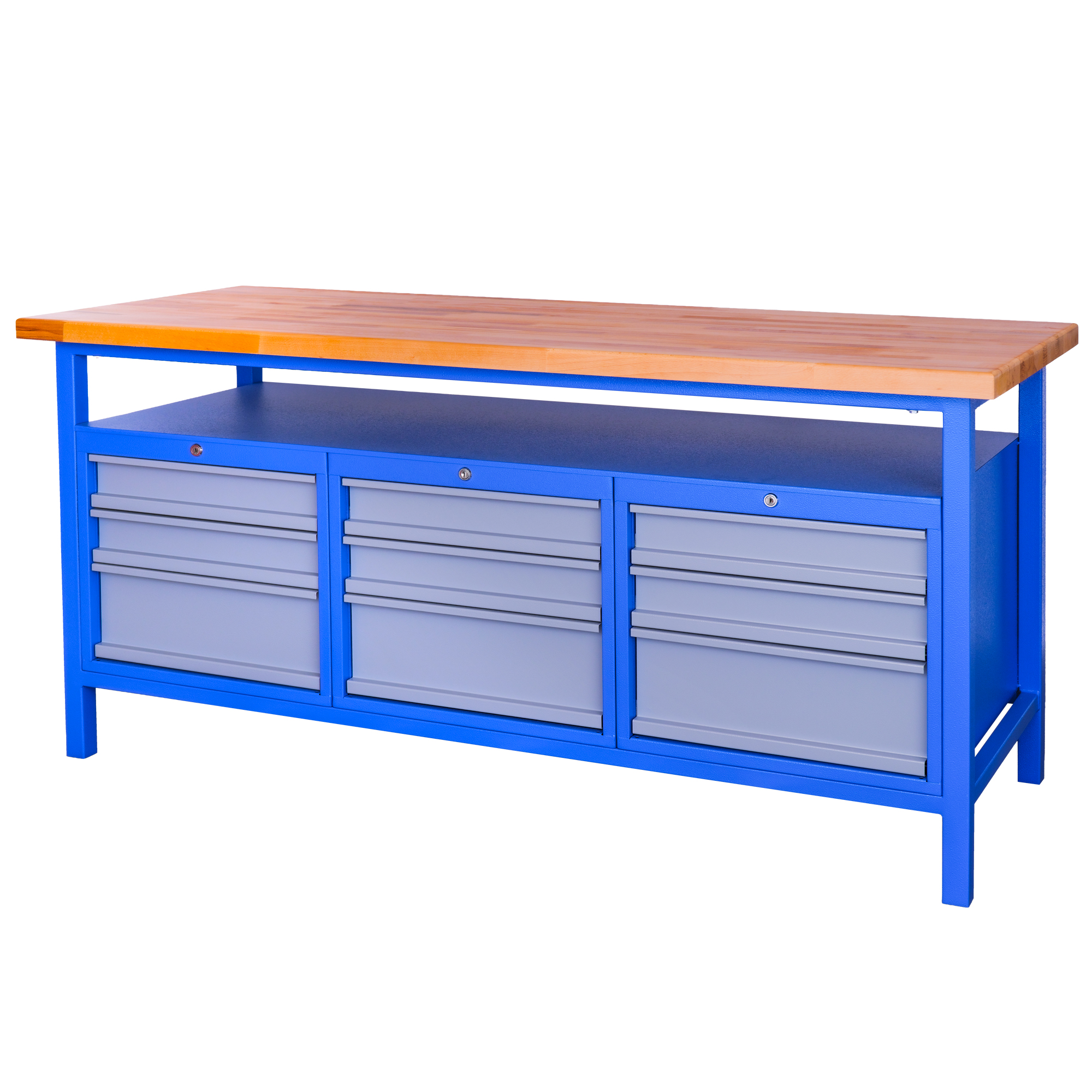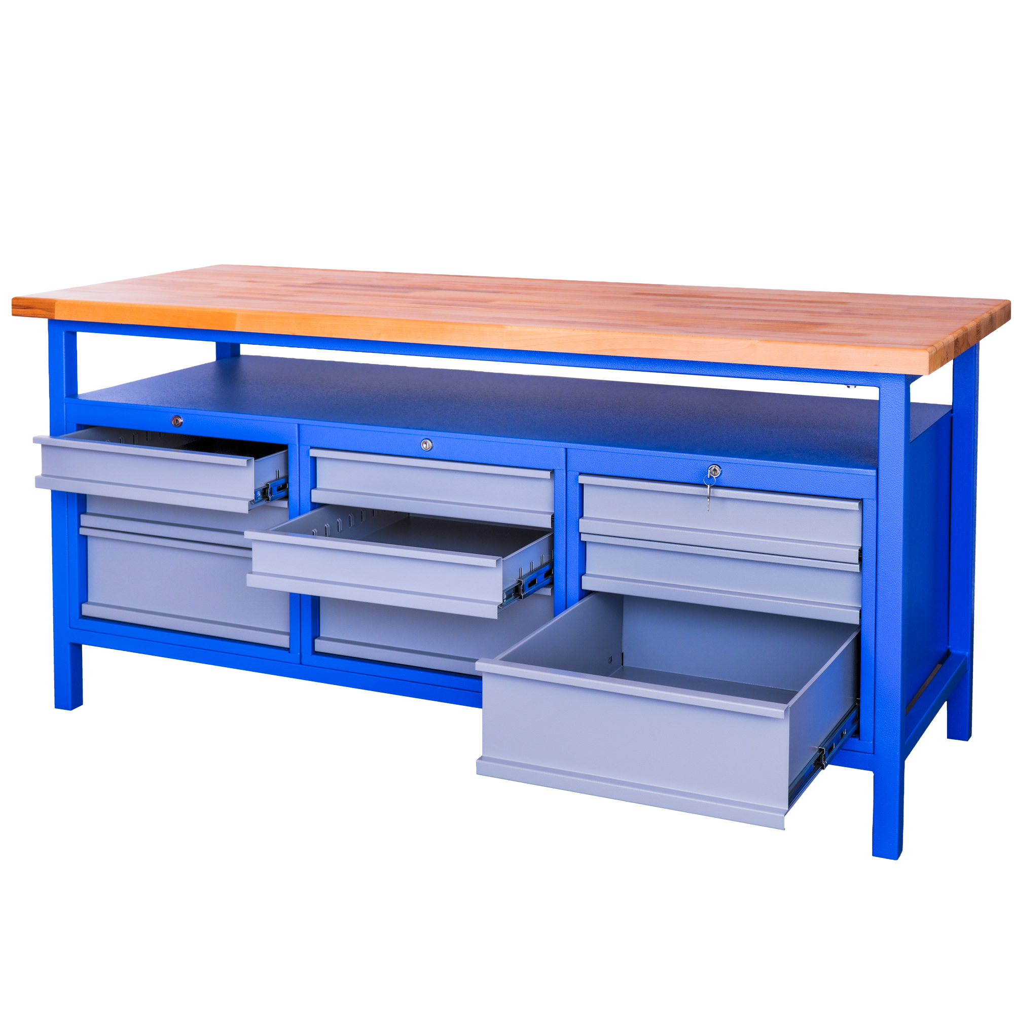 Robustný dielenský pracovný stôl je navrhnutý pre každodenné profesionálne využitie v dielňach, školách aj technických prevádzkach, kde je dôležitá pevnosť, spoľahlivosť a dostatok úložného priestoru.