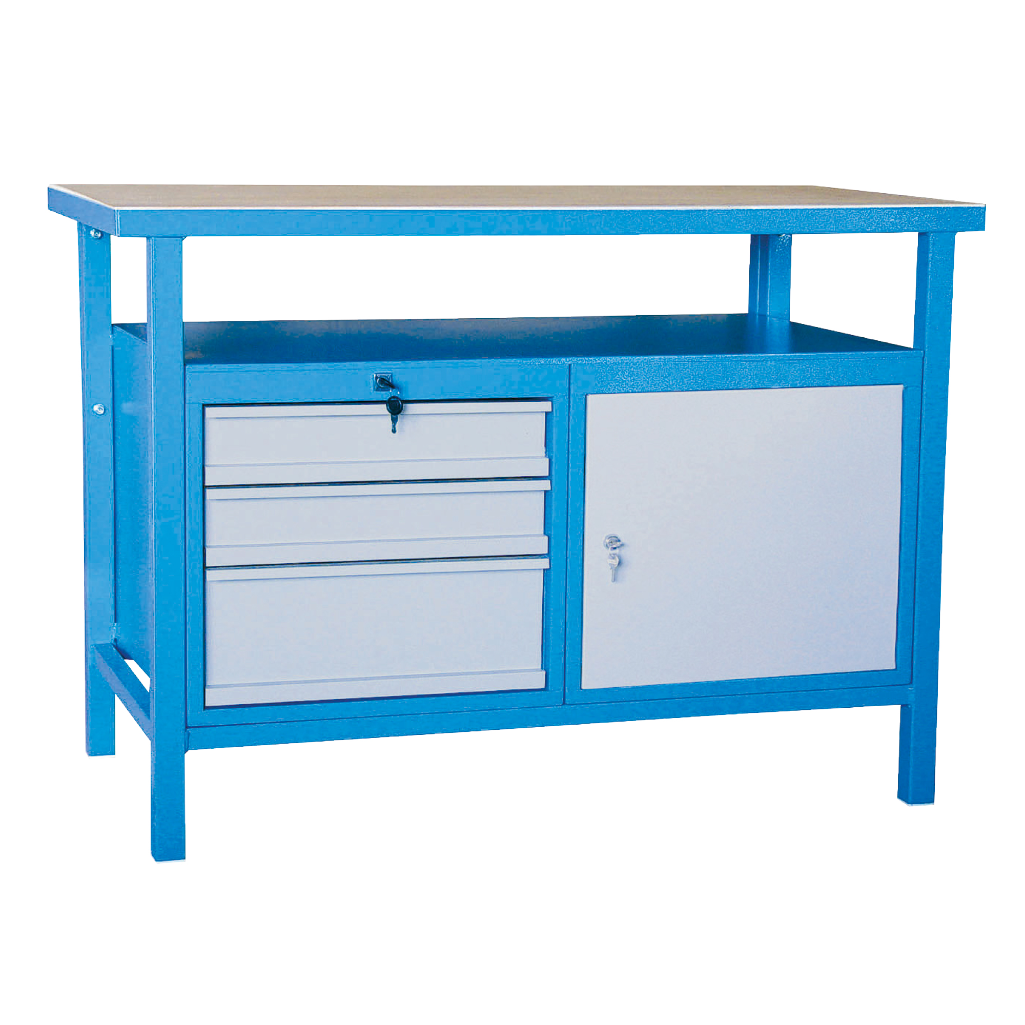 - Kovový dielenský pracovný stôl so zásuvkami a skrinkou, 1200 mm, RAL 5015/7001, P1200SLT