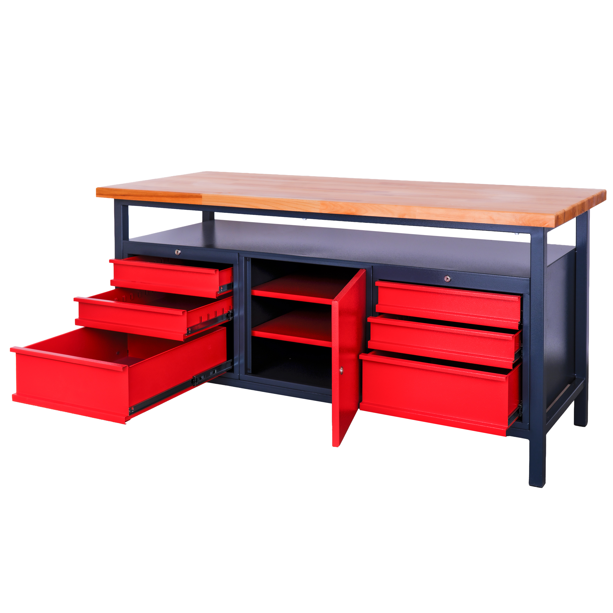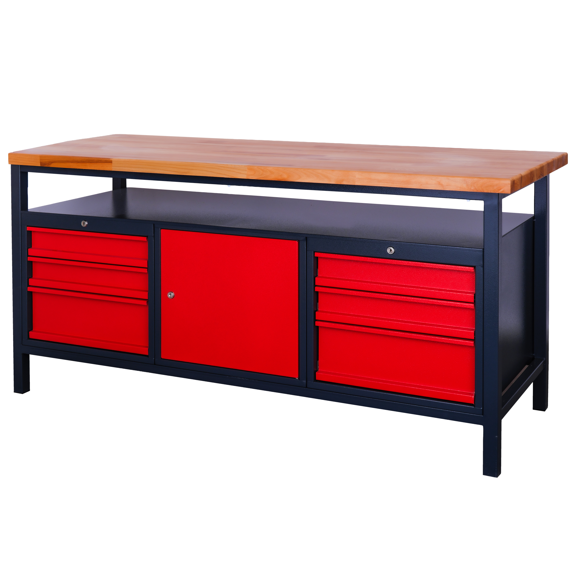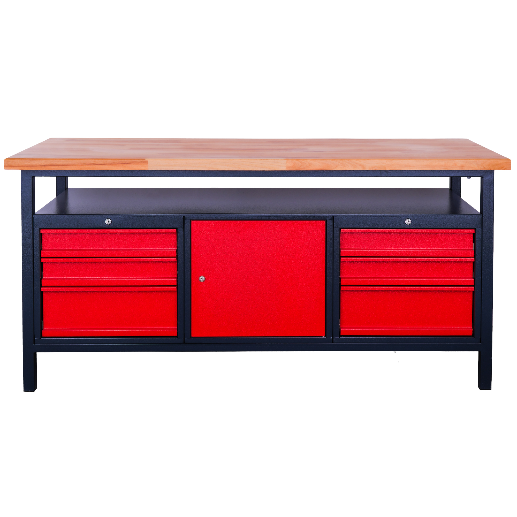 Kovový dielenský pracovný stôl so zásuvkami a skrinkou, 1700 mm-01