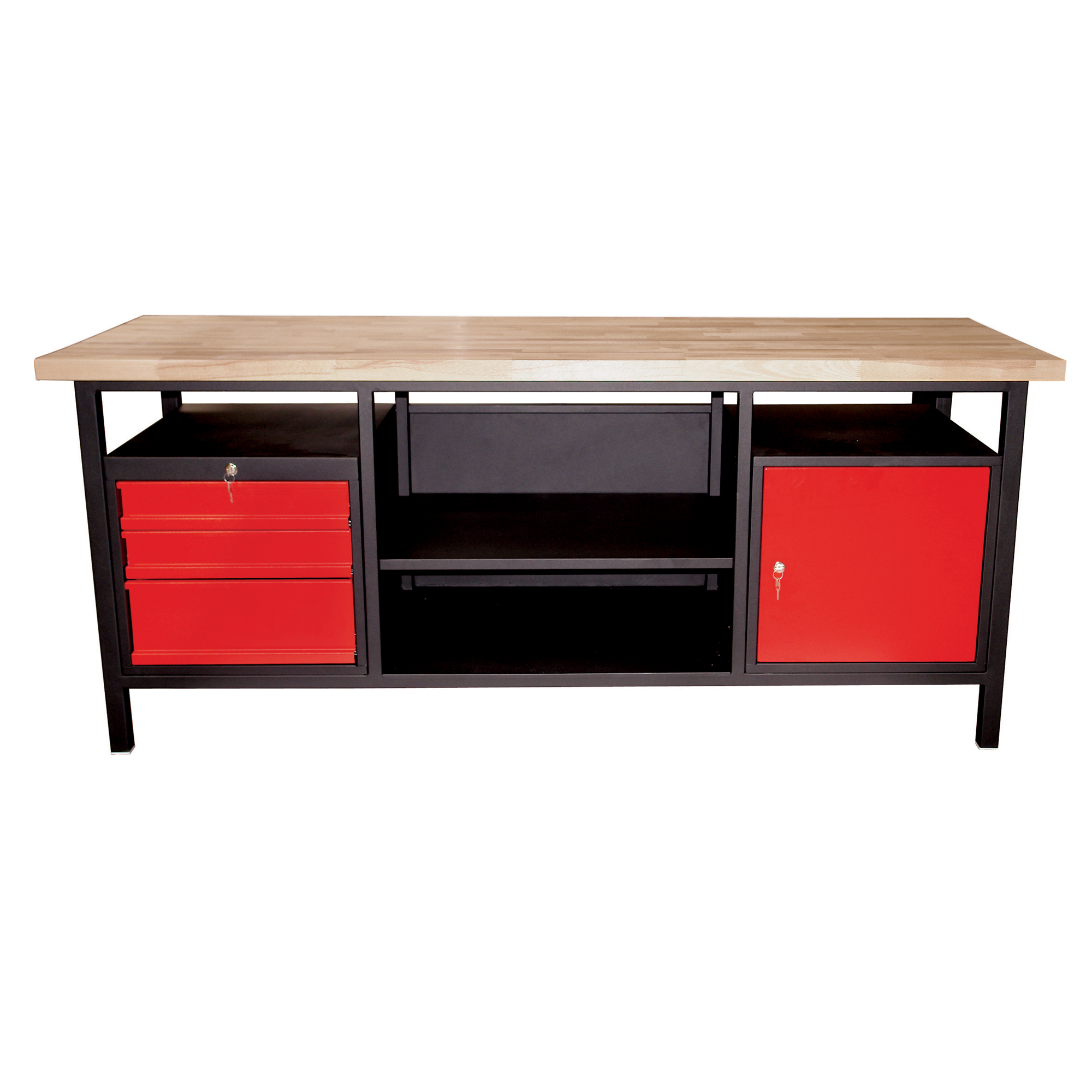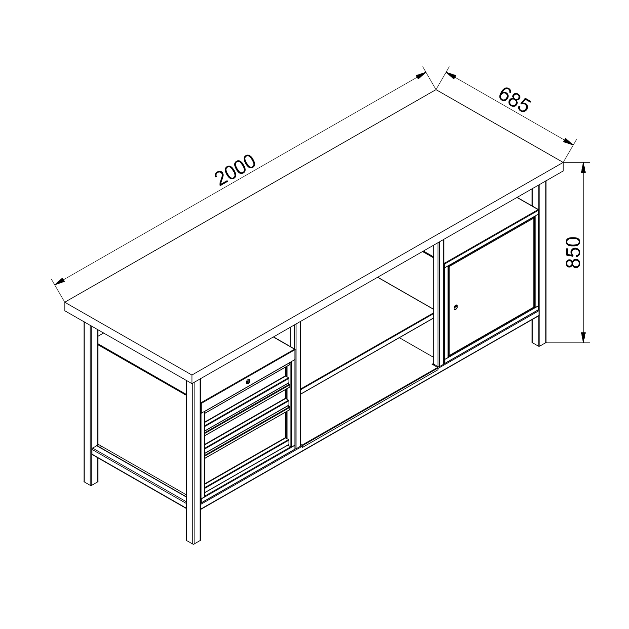 - Kovový dielenský pracovný stôl so zásuvkami, policou a skrinkou, 2000 mm, RAL 7016/3000